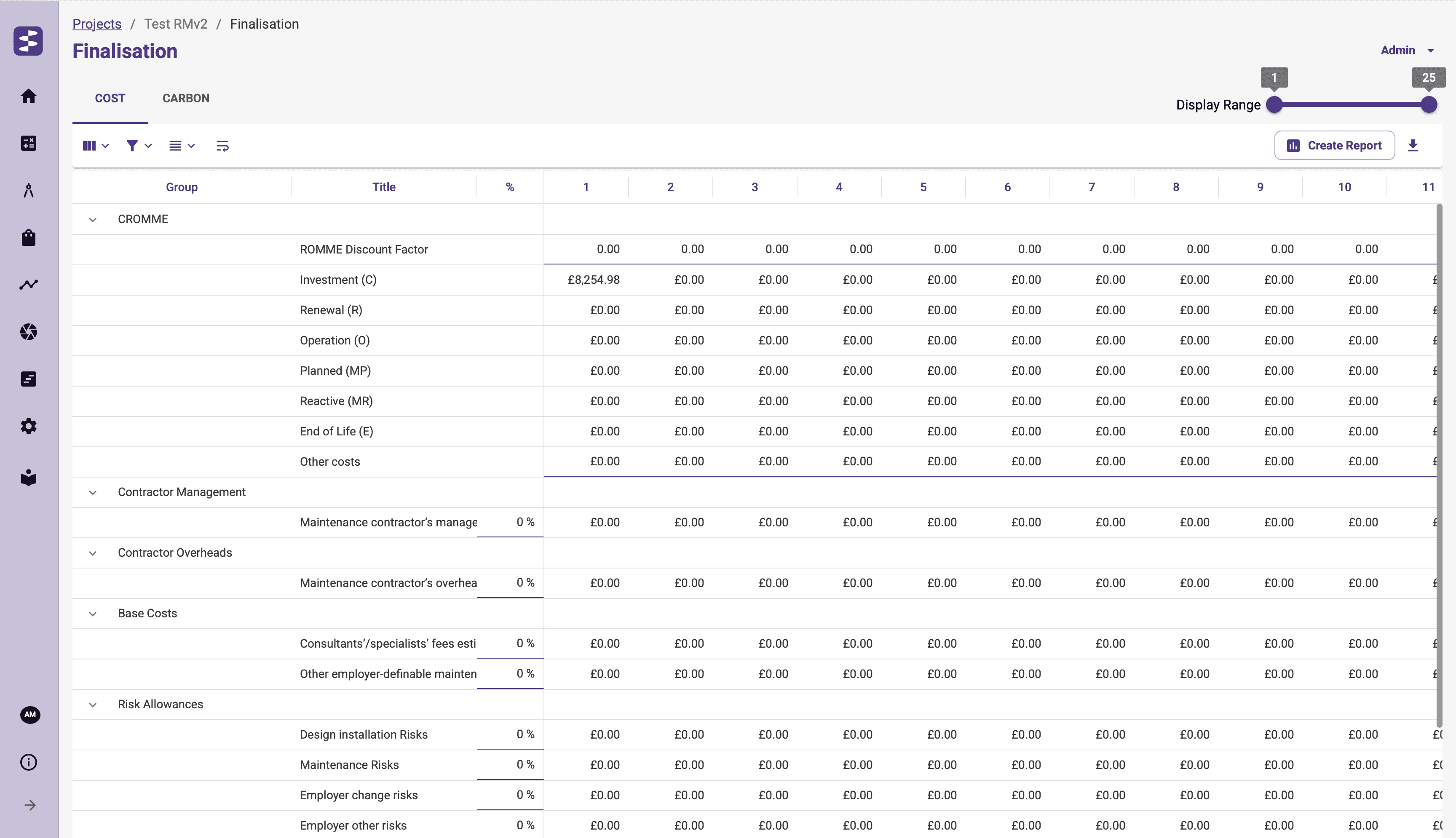 Select relevant elements such as Renewals, Operational, Maintenance, and End of Life